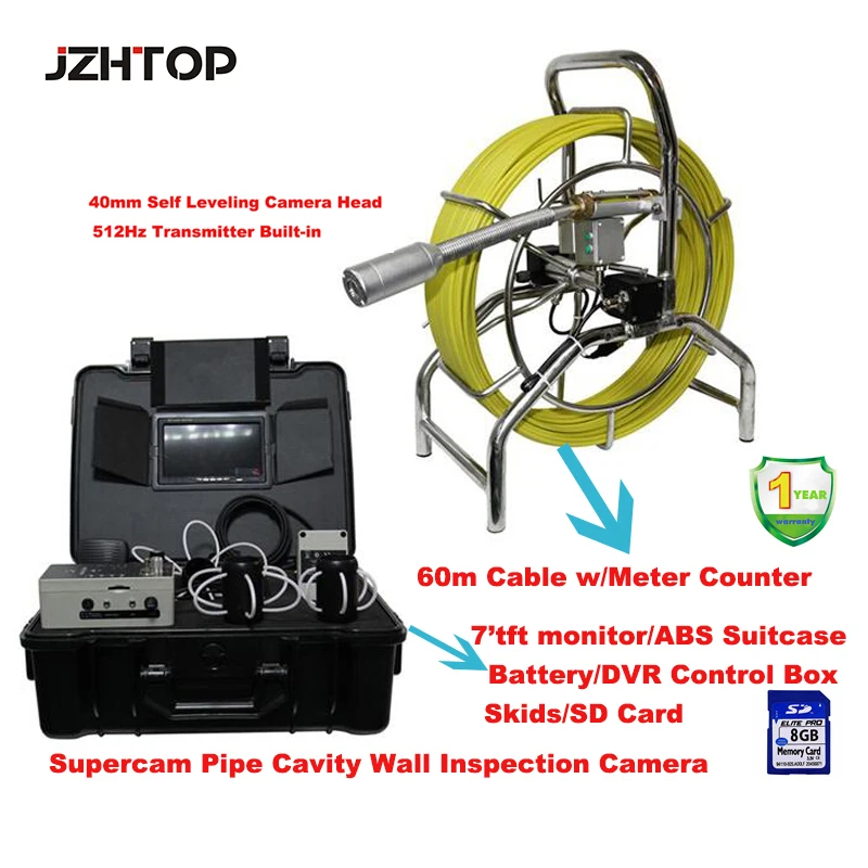 Drain Well Wall Sewer Pipe Inspection Camera 40mm Self Leveling Meter Counter DVR 512hz Transmitter Pipe Locator w/60meter Cable