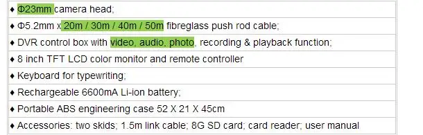 23mm Pipeline camera+50m cable+DVR+Keyboard+ABS Case